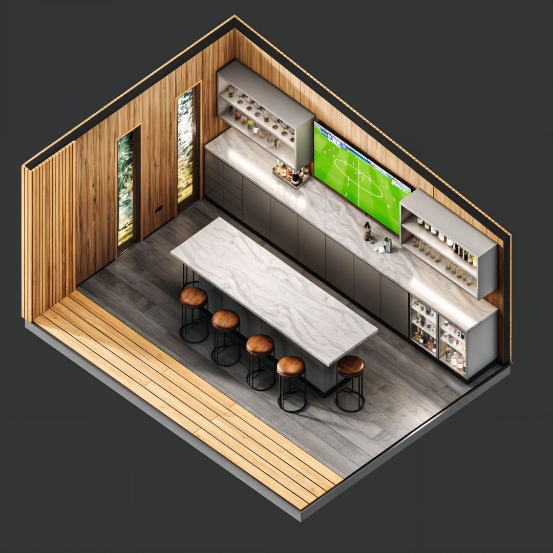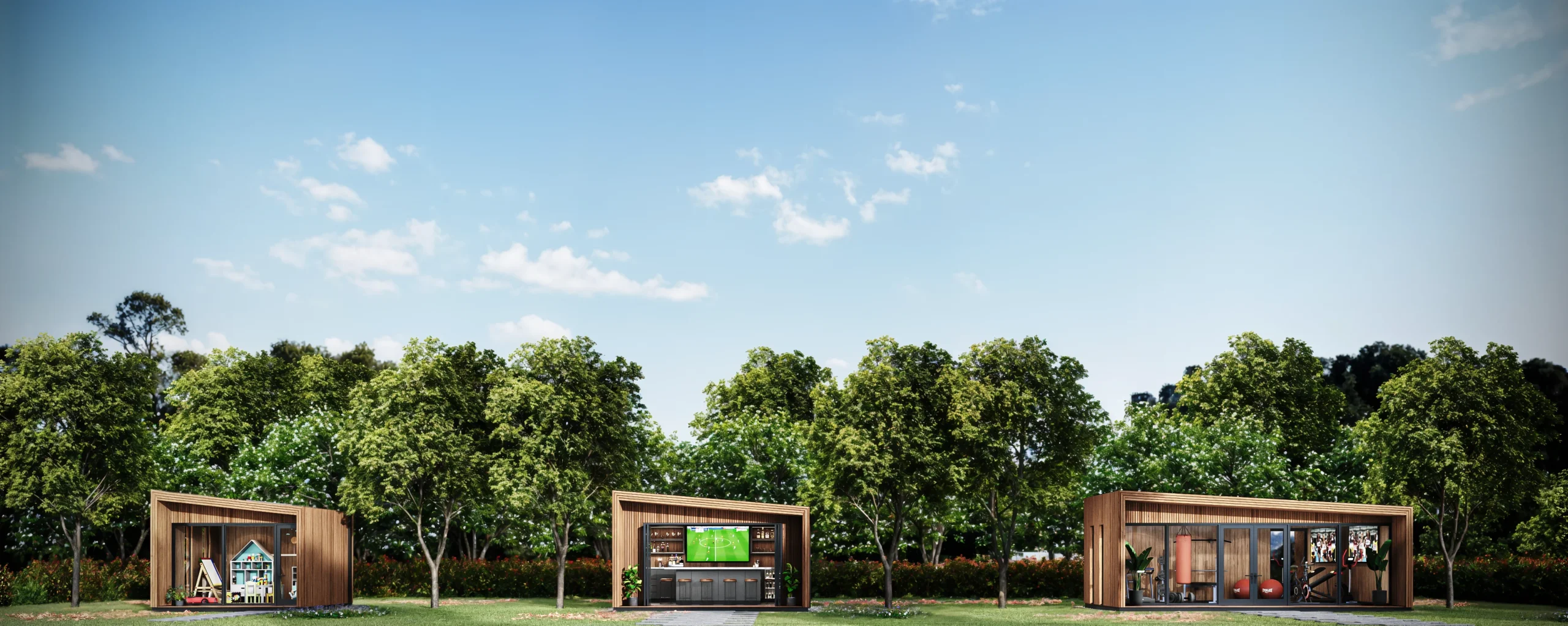 Todos los modelos incluyen un equipamiento base, y dependiendo del tamaño, se ajusta la cantidad de elementos. Los usos posibles son múltiples: estudio de música, oficina en casa, sala de juegos para niños, gimnasio, man cave, simulador de golf, bar, sala de billar o ping pong, o un cuarto adicional. En los modelos M y L puede añadirse baño como opción personalizada.